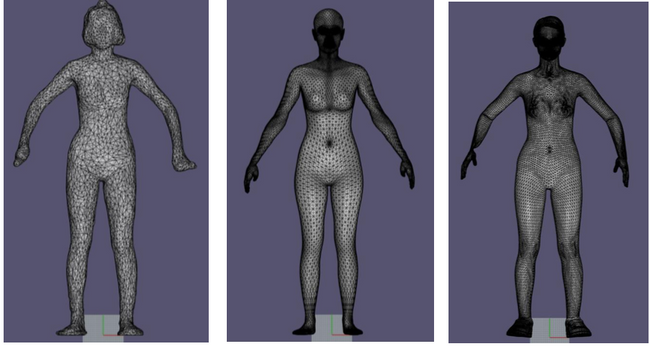 The process I followed requires a garment pattern simulated in 3D on the base size avatar, and an accurate 3D avatar of the customer, obtained from raw data of the 3D body scan, edited in order to produce a usable avatar, that still maintains exact shapes and asymmetries.